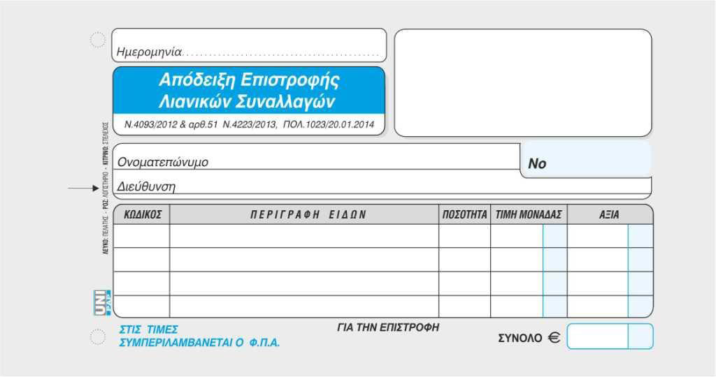ΑΠΟΔΕΙΞΗ ΕΠΙΣΤΡΟΦΗΣ ΛΙΑΝΙΚΩΝ ΠΩΛΗΣΕΩΝ 10Χ18 ΔΙΠΛΟΤΥΠΗ Νο227 ΑΥΤΟΓΡΑΦΙΚΗ