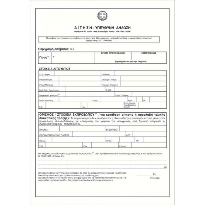 ΜΠΛΟΚ ΥΠΕΥΘΥΝΗ ΔΗΛΩΣΙΣ 21Χ30 Νο163 Φ100