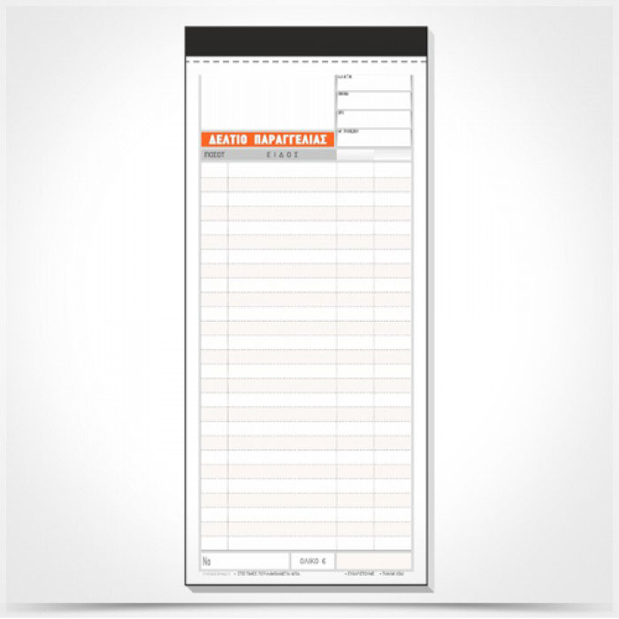 ΔΕΛΤIO ΠΑΡΑΓΓΕΛΙΑΣ ΕΣΤΙΑΤΟΡΙΟΥ 9Χ21 ΤΡΙΠΛΟΤΥΠΟ Νο251 ΑΥΤΟΓΡΑΦΙΚΟ