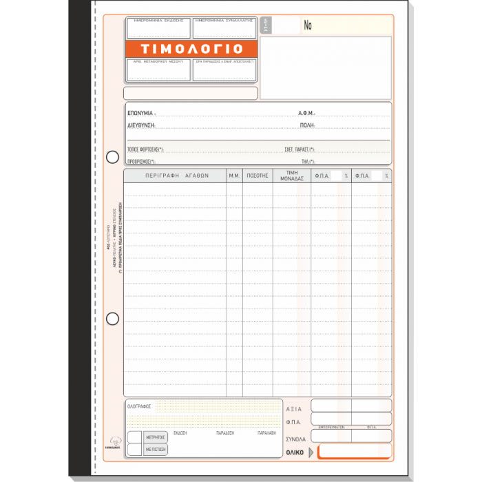 ΤΙΜΟΛΟΓΙΟ ΠΩΛΗΣΗΣ 2 ΦΠΑ 17Χ25 ΤΡΙΠΛΟΤΥΠΟ Νο276Α ΑΥΤΟΓΡΑΦΙΚΟ