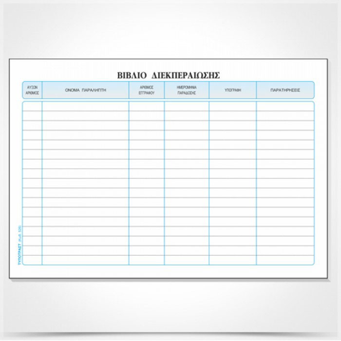 ΒΙΒΛΙΟ ΔΙΕΚΠΕΡΑΙΩΣΗΣ ΕΓΓΡΑΦΩΝ 17Χ25 100 ΦΥΛΛΑ Νο526