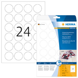 HERMA 4234 Ετικέτες λευκές ασφαλείας/σφράγισης Φ40 Laser/Copy, 600 ετικ/πακ.25φύλλων